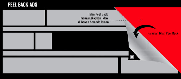 Istilah "Peel back" dalam bahasa Indonesia berarti "Mengupas". Iklan Peel Back mengundang pengguna untuk "mengupas" layer dari beranda situs web dan menampilkan iklan sesungguhnya yg berada di layer bawahnya. Saat Anda sedang mengakses sebuah laman yg memuat iklan Peel Back, maka Anda akan melihat ada segitiga kecil yg menggoda mata Anda di sudut halaman bagian atas. Gunakan mouse Anda untuk melakukan drag (ditarik) pada segitiga kecil tersebut sehingga seolah terkupas layer laman penerbit dan mengungkap konten iklan di bawahnya. Cukup keren untuk dilihat bukan ?